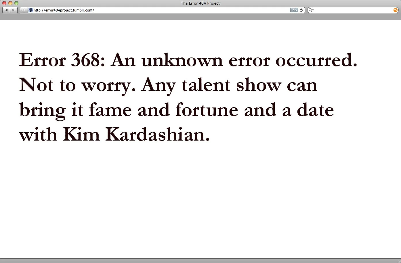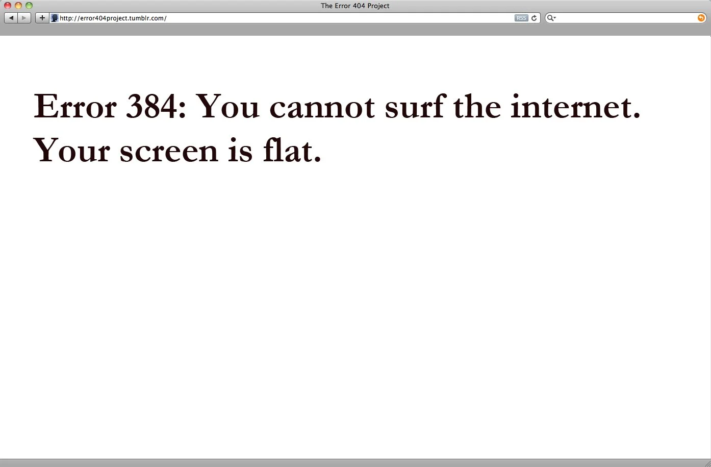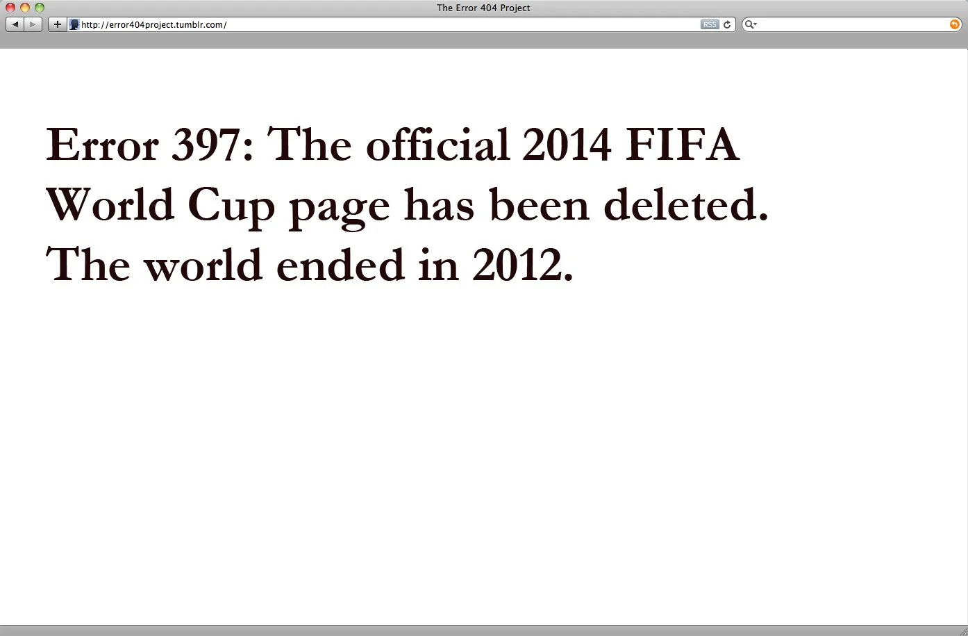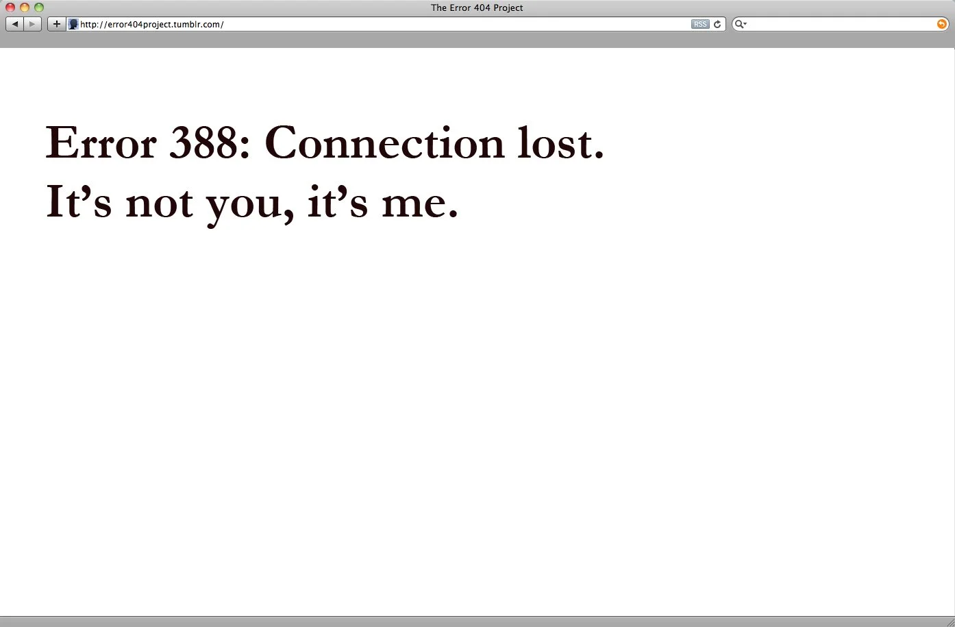 [PT] Tempos houve em que o "Erro 404", de "Página Não Encontrada", era um dos resultados mais populares da Internet. Todos os dias nos cruzávamos com ele, mas nunca reflectimos o suficiente sobre o assunto. Foi por essa razão que criei o "Error 404 Project", um site entretanto eliminado por falta de paciência do servidor: para responder à pergunta "Quais são os outros 403 erros?". Não tendo encontrado respostas que me satisfizessem o desejo de galhofa, inventei-os. Até ao Erro 360, que entretanto meteu-se o almoço, o Natal e a festa da escola dos miúdos.