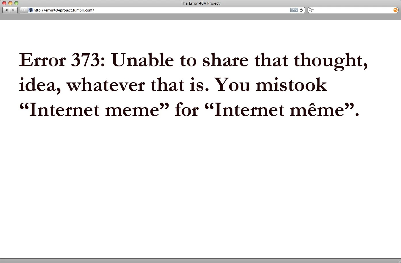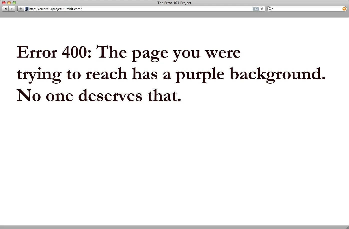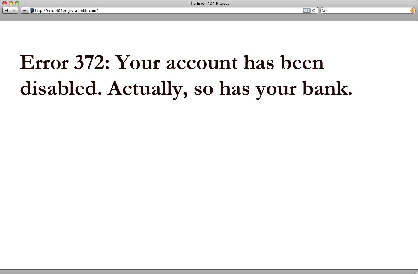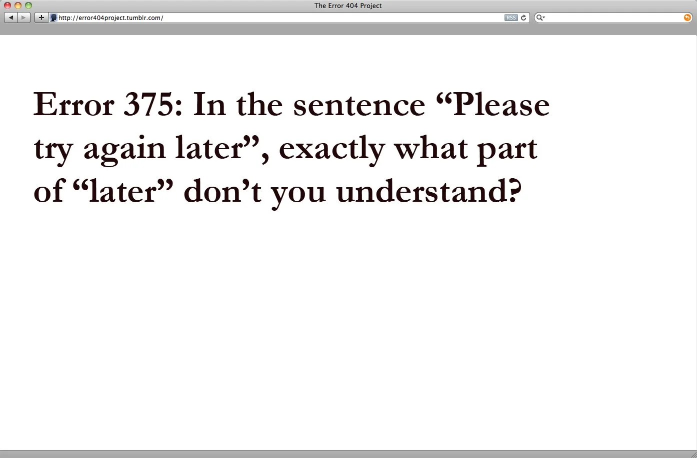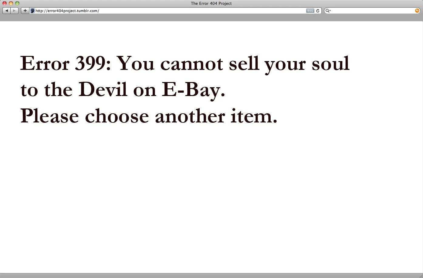 [PT] Tempos houve em que o "Erro 404", de "Página Não Encontrada", era um dos resultados mais populares da Internet. Todos os dias nos cruzávamos com ele, mas nunca reflectimos o suficiente sobre o assunto. Foi por essa razão que criei o "Error 404 Project", um site entretanto eliminado por falta de paciência do servidor: para responder à pergunta "Quais são os outros 403 erros?". Não tendo encontrado respostas que me satisfizessem o desejo de galhofa, inventei-os. Até ao Erro 360, que entretanto meteu-se o almoço, o Natal e a festa da escola dos miúdos.