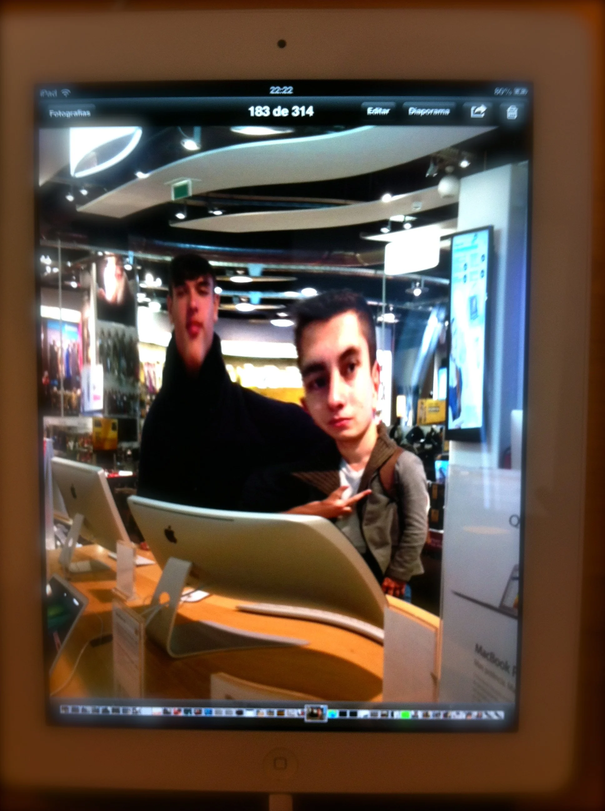 [ENG] The human being seeks eternity. And in this quest, there are people who try to perpetuate their existence in the memory of the gadgets on display in technology stores. Somewhat creative people who, when handling an iPad for the first time, can't resist photographing themselves and their surroundings. To our delight, the photos remain on the devices. And so the iPad Virgins "project" was born, an archaeological incursion into retina screens to keep the desire for eternity from dying. And to have a laugh.