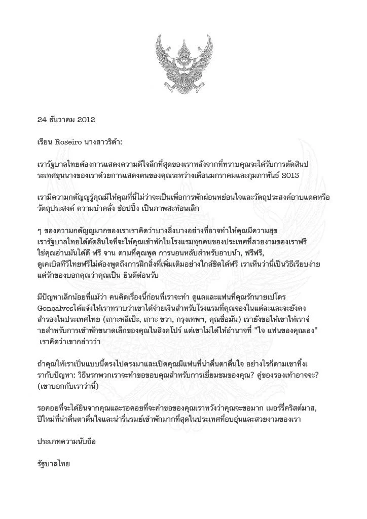 Problem: It wasn't a very flashy gift. Solution: I turned it into an official invitation from the Thai government. It was a success. The trip too.